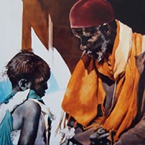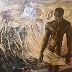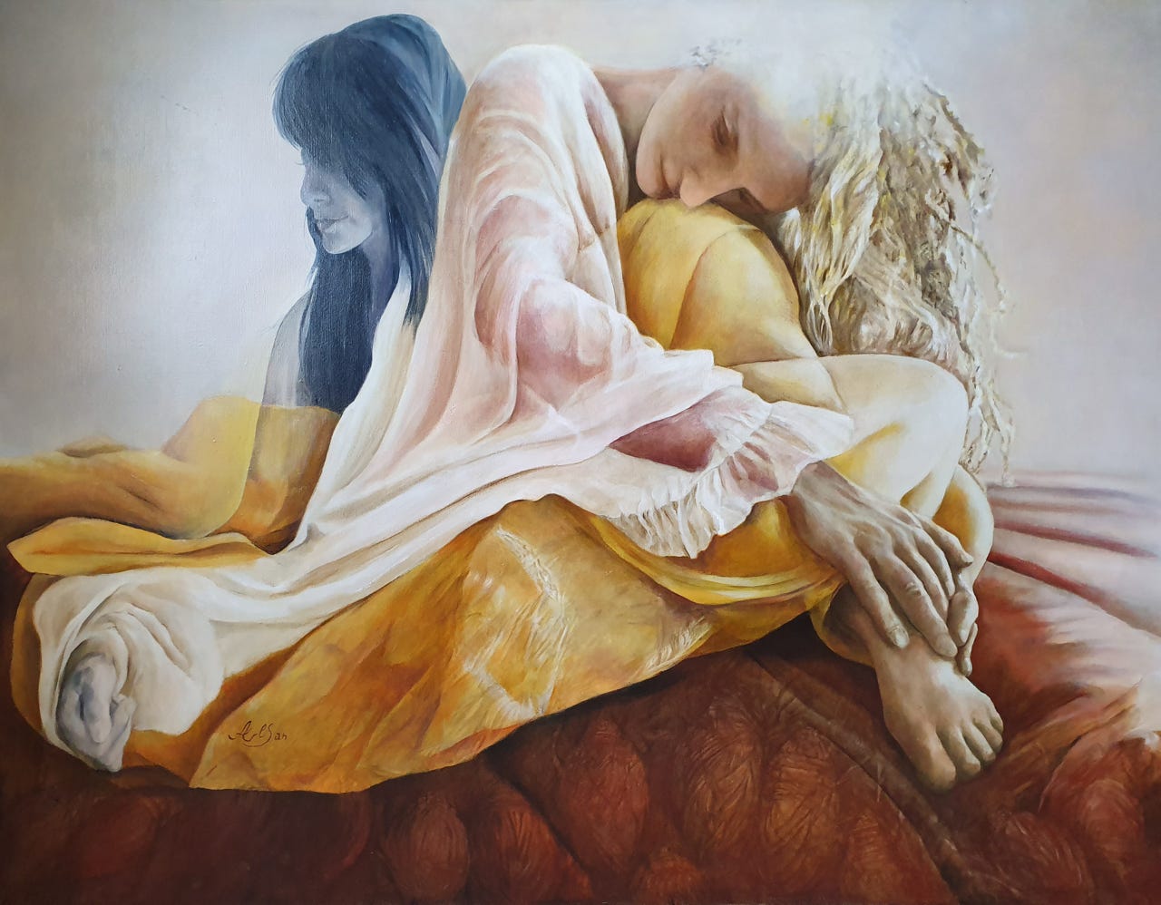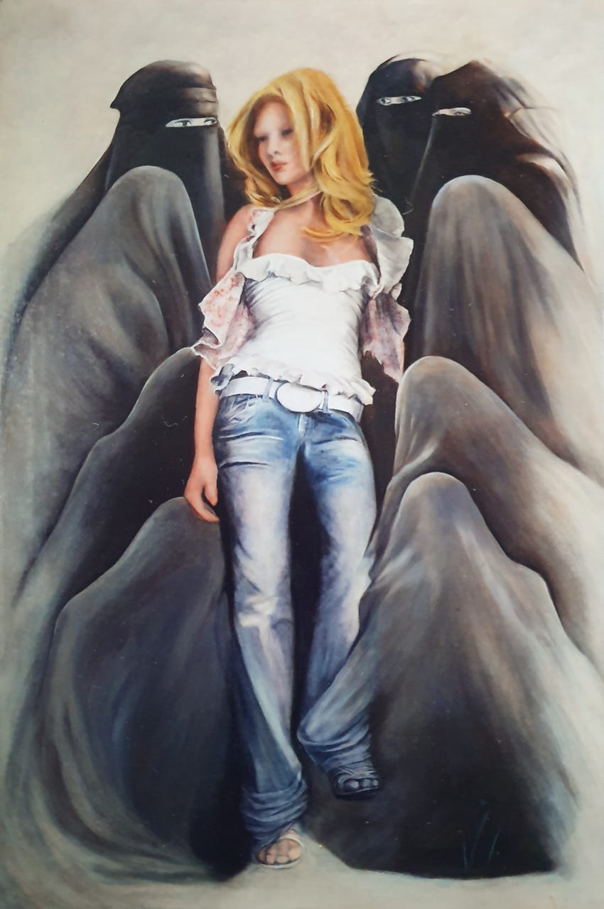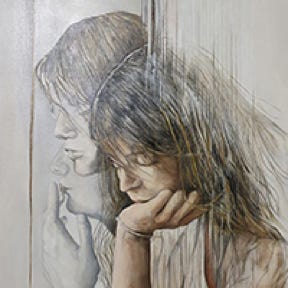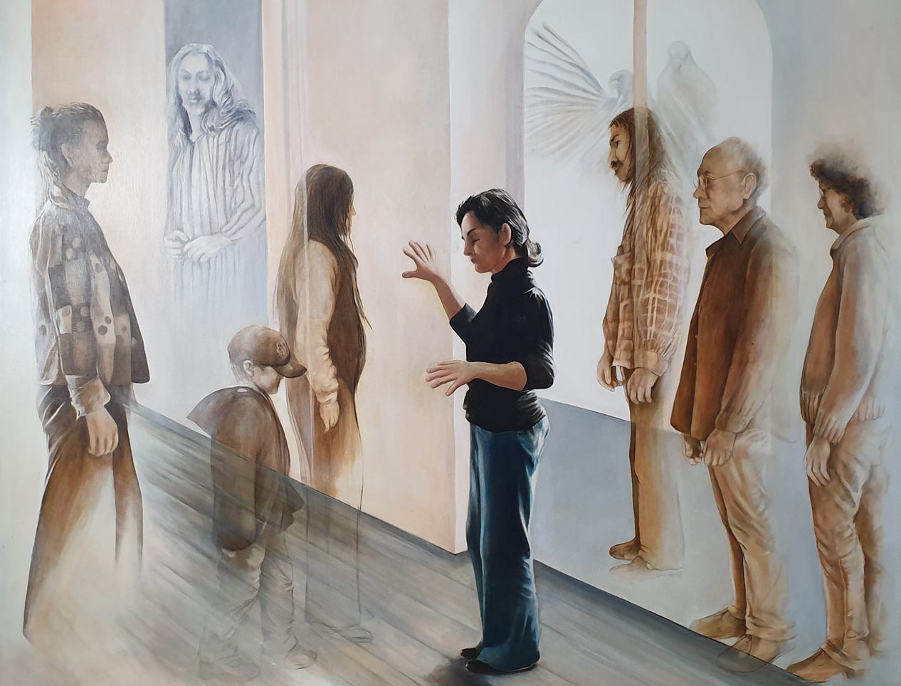 la professeure peinte sur la gauche du tableau,